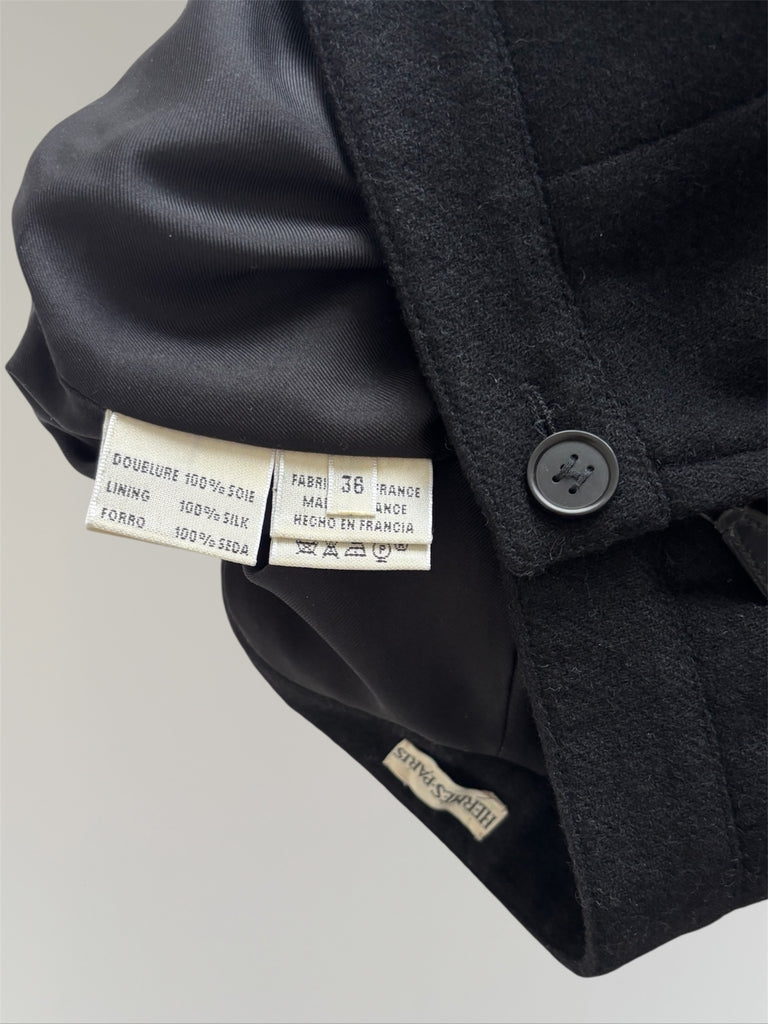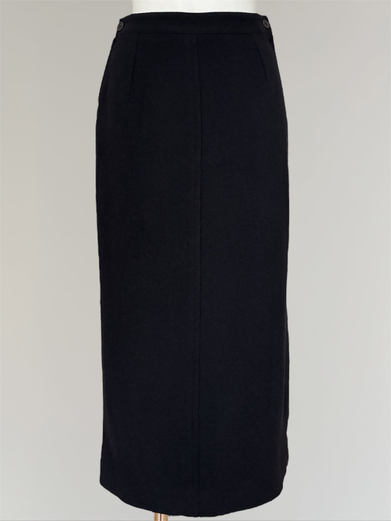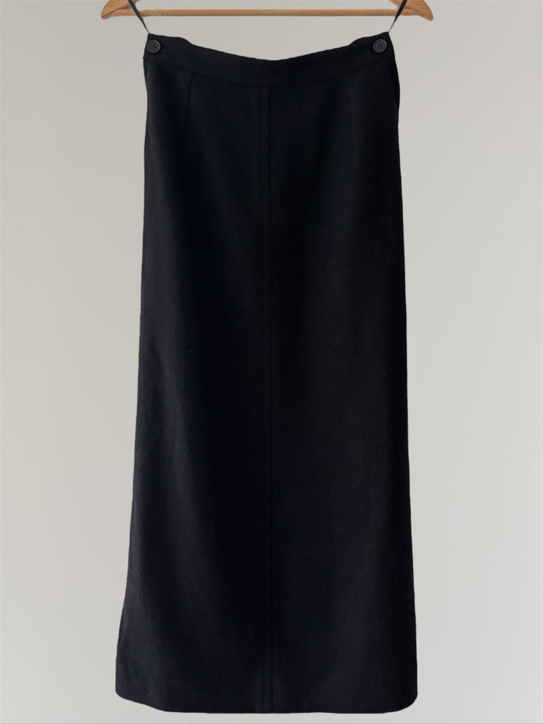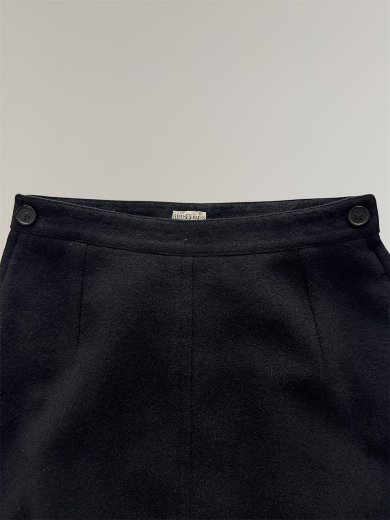 Straight fit long skirt designed by Martin Margiela for Hermès. Zippers on both sides of the waist with iconic six-hole buttons. Fully lined in silk with a small slit in the back which makes the skirt fall perfectly. Small fit, fits rather FR32-34