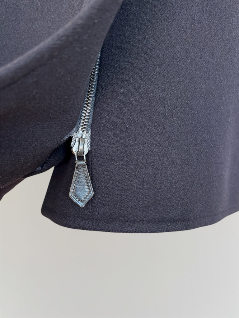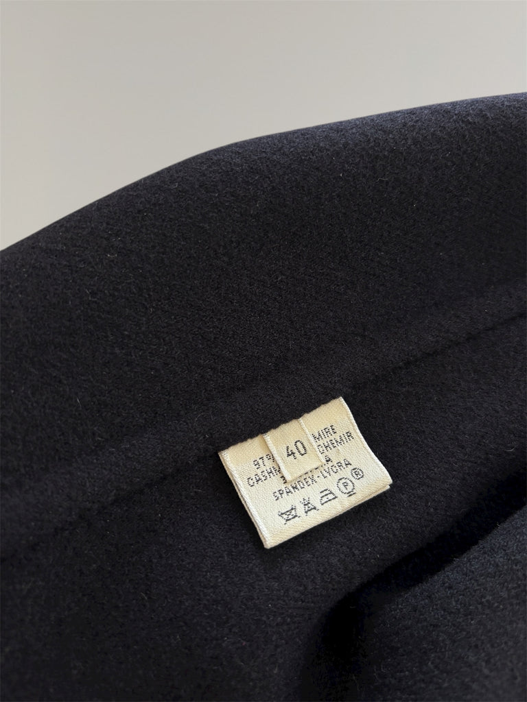 Hermès by Martin Margiela cashmere coat with high collar in a classic navy tone. A zipper to close under a wide placket. In a very good condition, however bottom of the zipper has slightly detached, it can still be used normally but requires delicacy.