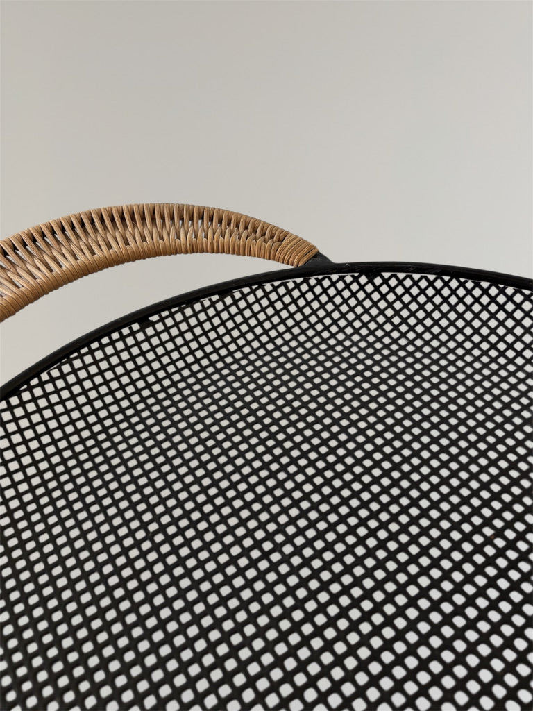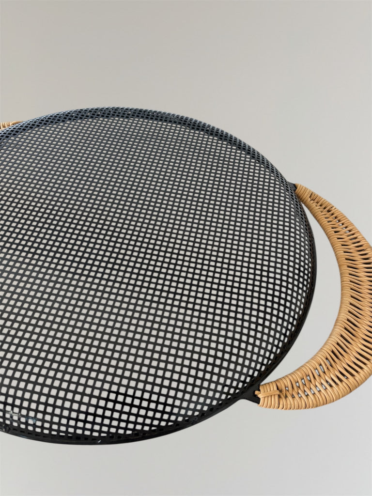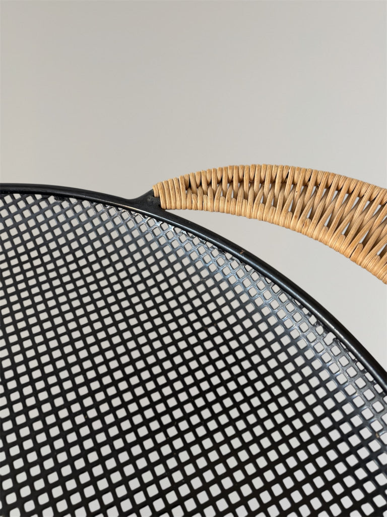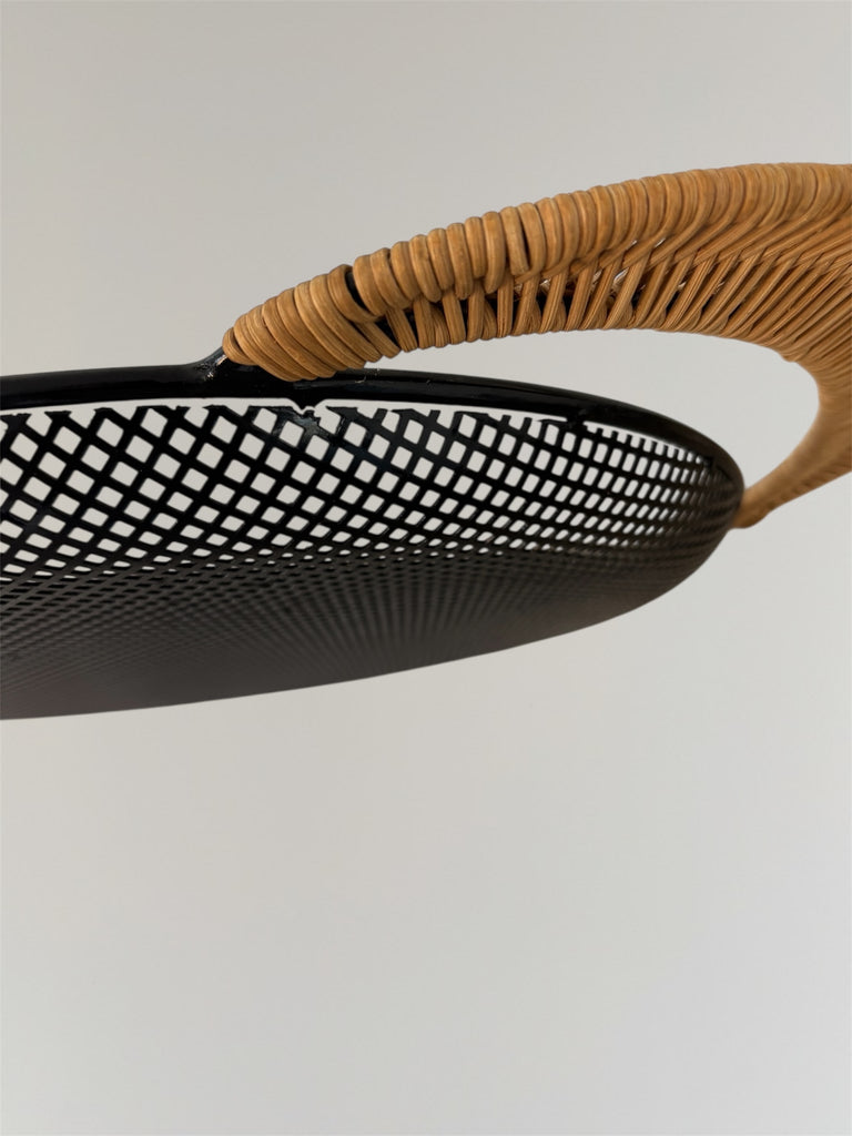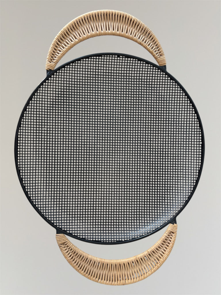 Perforated metal tray with rattan handles by Mathieu Matégot circa 1950. In a very good original condition, with very minor wear as shown in the photos.
